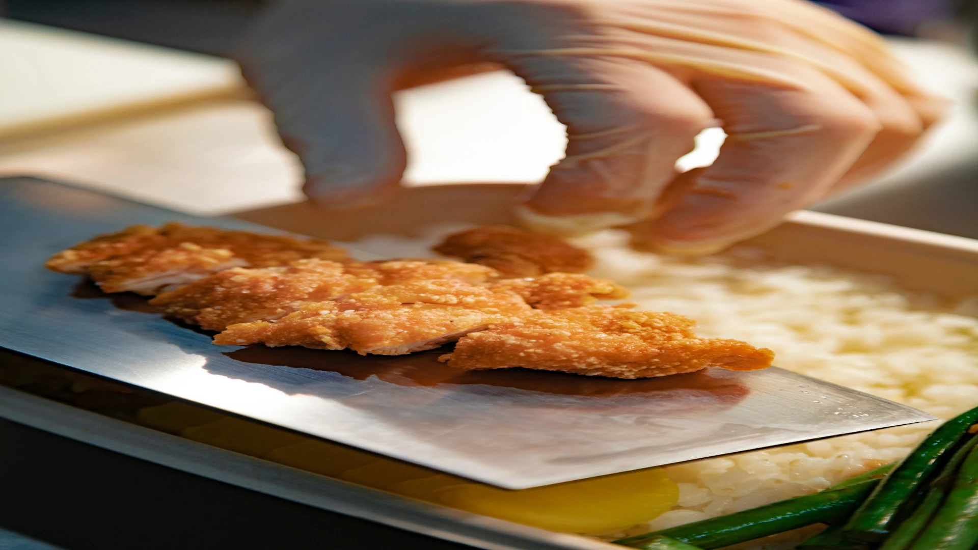 Prvi korak jeste isjeći pileća prsa na tanke šnicle i malo ih istući čekićem za kuhanje.