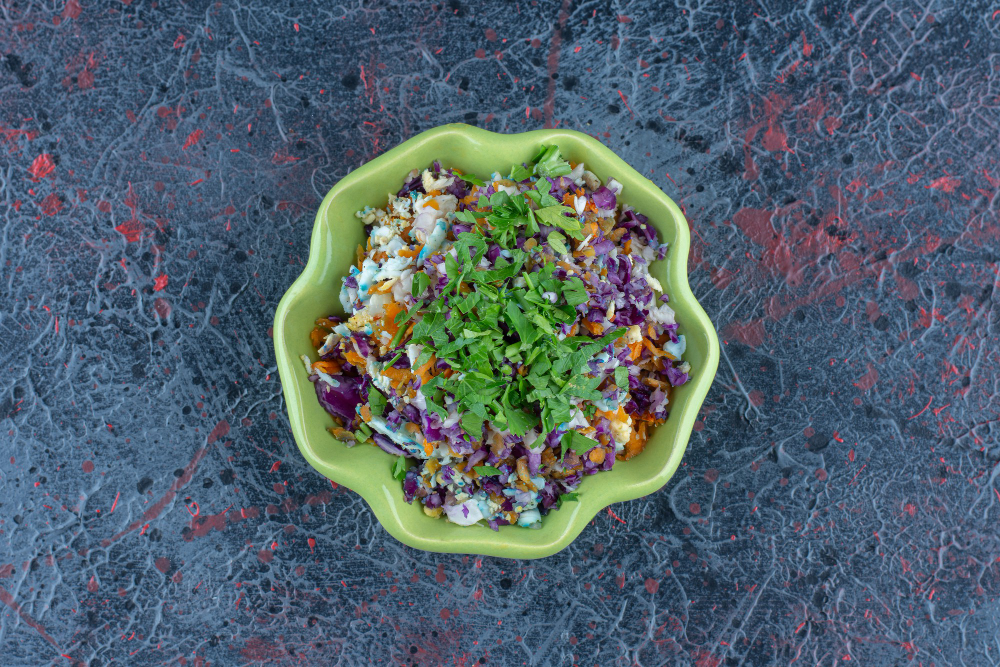 Ova osvježavajuća salata spaja jednostavne, ali ukusne sastojke poput hrskavog ljubičastog kupusa, sočne mrkve i aromatičnog luka, stvarajući savršen balans boja, tekstura i ukusa. Osim što je brza i jednostavna za pripremu, ova salata je bogata vitaminima, antioksidansima i vlaknima, čineći je savršenim dodatkom zdravom obroku ili laganoj večeri. Spremite se da uživate u osvježavajućem spoju nutritivnosti i ukusa sa svakim zalogajem!